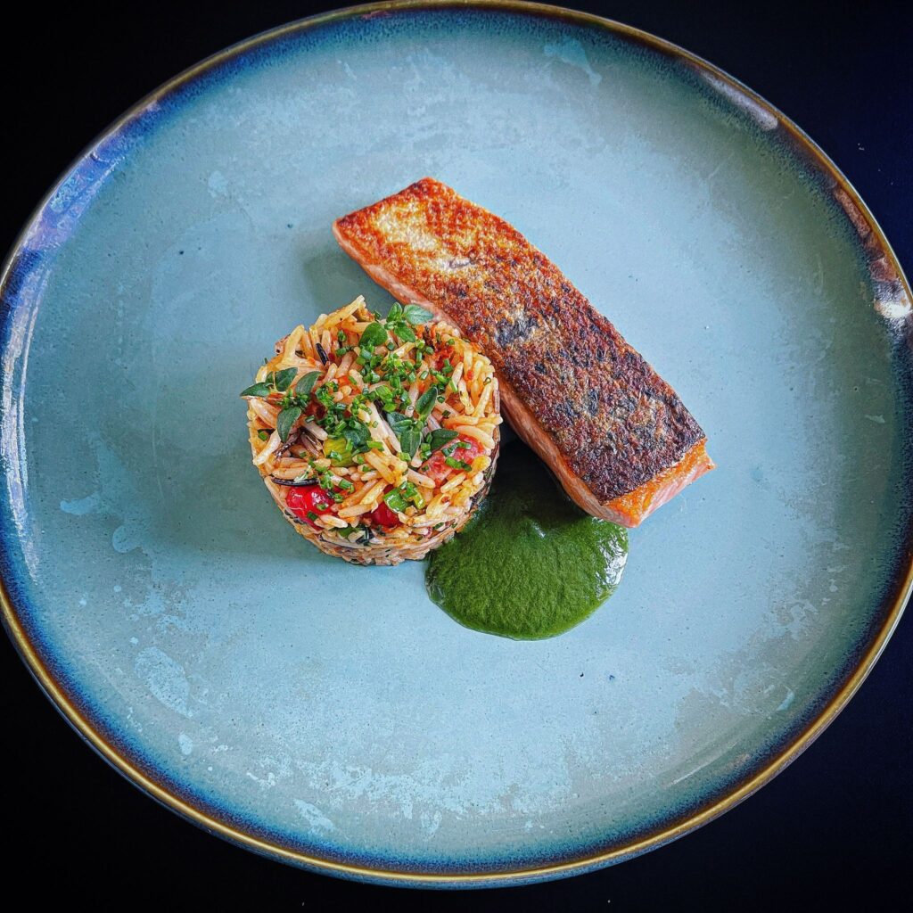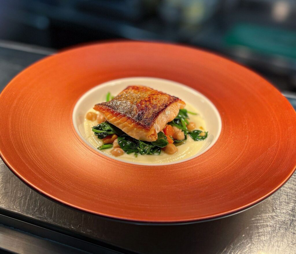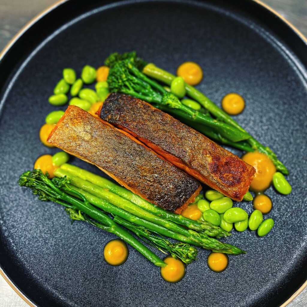 There’s a quiet kind of beauty in a dish like this — something that speaks more through balance than complexity. The salmon, seared just long enough for the skin to crisp and the flesh to flake gently beneath the fork, rests over a soft layer of hollandaise that brings richness without heaviness. Around it, a […]